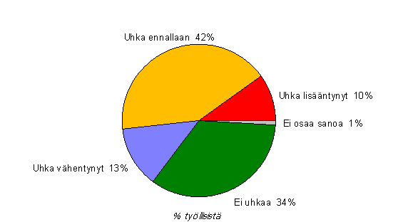 A6 Työllisten arvio työttömyyden uhan muutoksesta omalla kohdallaan viimeisten 12 kuukauden aikana, helmikuu 2008