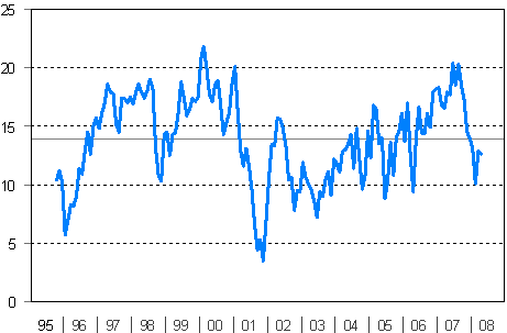Kuluttajien luottamusindikaattori 10/1995-4/2008
