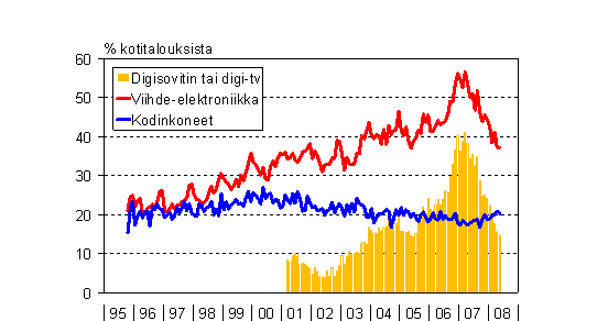 A3 Kotitalouksien aikomukset käyttää rahaa kodintekniikan hankintaan seuraavan puolen vuoden aikana 10/1995 - 5/2008