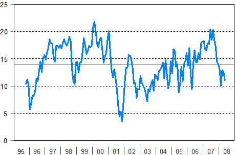 Konsumenternas förtroendeindikator 10/1995-5/2008