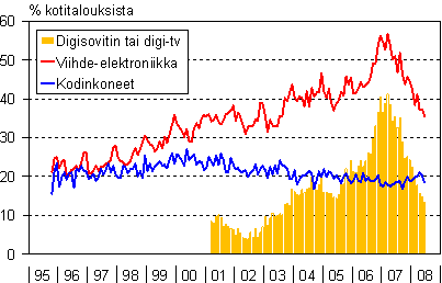 A3 Kotitalouksien aikomukset käyttää rahaa kodintekniikan hankintaan seuraavan puolen vuoden aikana 10/1995 - 6/2008