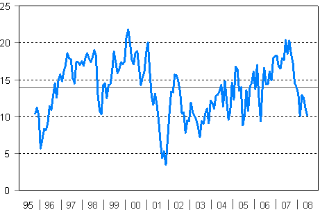 - A0 Kuluttajien odotukset taloudesta ja kuluttajien luottamusindikaattori 10/1995 - 6/2008 (27.6.2008)