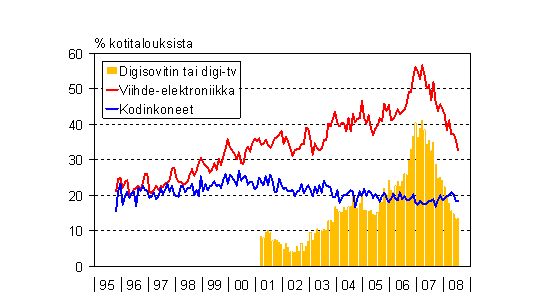 A3 Kotitalouksien aikomukset käyttää rahaa kodintekniikan hankintaan seuraavan puolen vuoden aikana 10/1995 - 7/2008