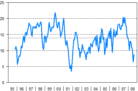 Konsumenternas förtroendeindikator 10/1995-8/2008