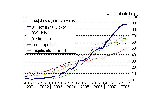 C 6 Uuden viihde-elektroniikan yleistyminen kotitalouksissa 2/2001-8/2008