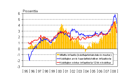 A7 Kuluttajien inflaationäkemykset ja mitattu inflaatio 10/1995 - 11/2008