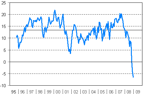 Konsumenternas förtroendeindikator 10/1995-12/2008