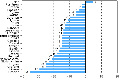 Konsumenternas förtroendeindikators avvikelse från landets medeltal i EU-länderna, november 2008*
