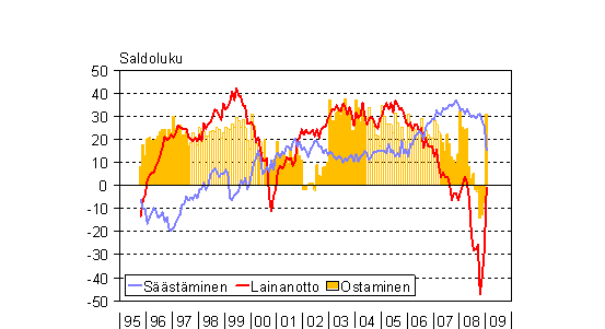A8 Kuluttajien arviot säästämisen, lainanoton ja kestotavaroiden ostamisen edullisuudesta haastatteluhetkellä 10/1995 - 1/2009