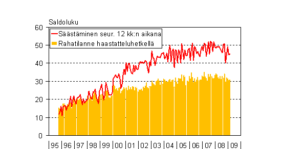A2 Kuluttajien arviot kotitaloutensa säästämismahdollisuuksista seuraavan 12 kk aikana ja rahatilanteesta haastatteluhetkellä 10/1995 - 2/2009