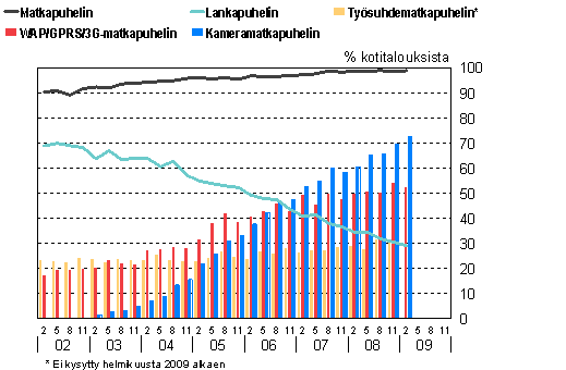C 3 Telelaitteet: puhelimien yleisyys kotitalouksissa 2/2002-2/2009