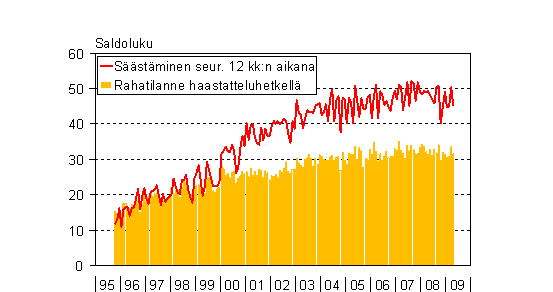 A2 Kuluttajien arviot kotitaloutensa säästämismahdollisuuksista seuraavan 12 kk aikana ja rahatilanteesta haastatteluhetkellä 10/1995 - 4/2009