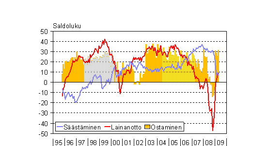 A8 Kuluttajien arviot säästämisen, lainanoton ja kestotavaroiden ostamisen edullisuudesta haastatteluhetkellä 10/1995 - 4/2009