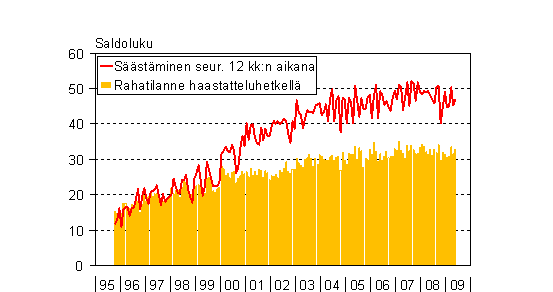 A2 Kuluttajien arviot kotitaloutensa säästämismahdollisuuksista seuraavan 12 kk aikana ja rahatilanteesta haastatteluhetkellä 10/1995 - 5/2009