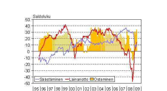A8 Kuluttajien arviot säästämisen, lainanoton ja kestotavaroiden ostamisen edullisuudesta haastatteluhetkellä 10/1995 - 5/2009