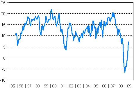 Kuluttajien luottamusindikaattori 10/1995-5/2009