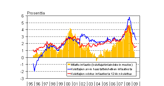 A7 Kuluttajien inflaationäkemykset ja mitattu inflaatio 10/1995 - 7/2009