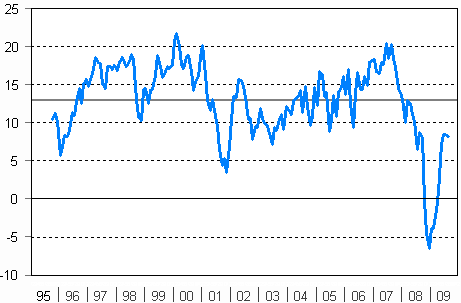 Lähde: European Commission, DG ECFIN, Business and Consumer Survey Results, July 2009