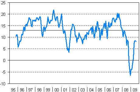 Konsumenternas förtroendeindikator 10/1995-8/2009