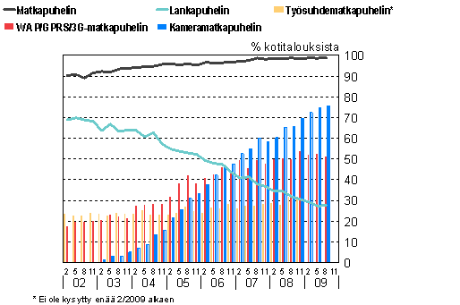 C 3 Telelaitteet: puhelimien yleisyys kotitalouksissa 2/2002-8/2009