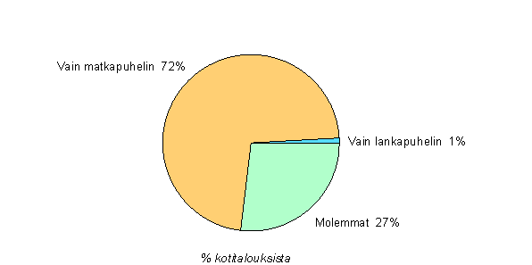 ISSN=2669-8862. elokuu 2009, C 5 Telelaitteet: vain lankapuhelimen, vain matkapuhelimen tai molempien omistaminen kotitalouksissa elokuussa 2009 . Helsinki: Tilastokeskus [viitattu: 26.11.2025].