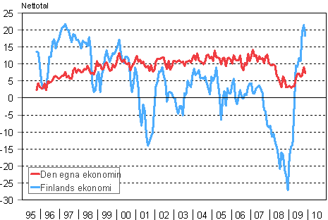 Konsumenternas förväntningar på den egna ekonomin och Finlands ekonomi om ett år 10/1995-11/2009