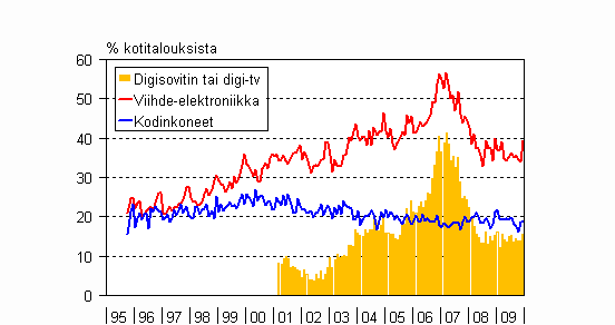 A3 Kotitalouksien aikomukset käyttää rahaa kodintekniikan hankintaan seuraavan puolen vuoden aikana 10/1995-12/2009