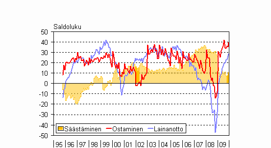 A9 Kuluttajien arviot säästämisen, lainanoton ja kestotavaroiden ostamisen edullisuudesta haastatteluhetkellä 10/1995-12/2009