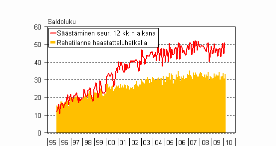 A2 Kuluttajien arviot kotitaloutensa säästämismahdollisuuksista seuraavan 12 kk aikana ja rahatilanteesta haastatteluhetkellä 10/1995-2/2010