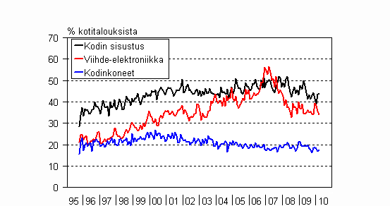 A3 Kotitalouksien aikomukset käyttää rahaa kodin sisustamiseen ja kodintekniikan hankintaan seuraavan puolen vuoden aikana 10/1995-3/2010