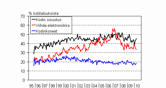 A3 Kotitalouksien aikomukset käyttää rahaa kodin sisustamiseen ja kodintekniikan hankintaan seuraavan puolen vuoden aikana 10/1995-4/2010