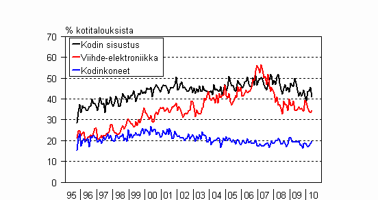 A3 Kotitalouksien aikomukset käyttää rahaa kodin sisustamiseen ja kodintekniikan hankintaan seuraavan puolen vuoden aikana 10/1995-5/2010
