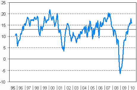 Kuluttajien luottamusindikaattori 10/1995-5/2010