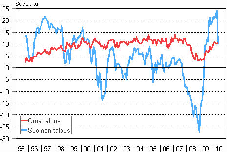 Kuluttajien näkemykset taloudesta toukokuussa 2010, saldolukuja1)