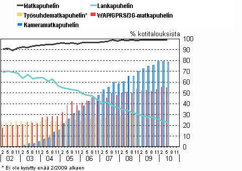 C 3 Telelaitteet: puhelimien yleisyys kotitalouksissa 2/2002-5/2010