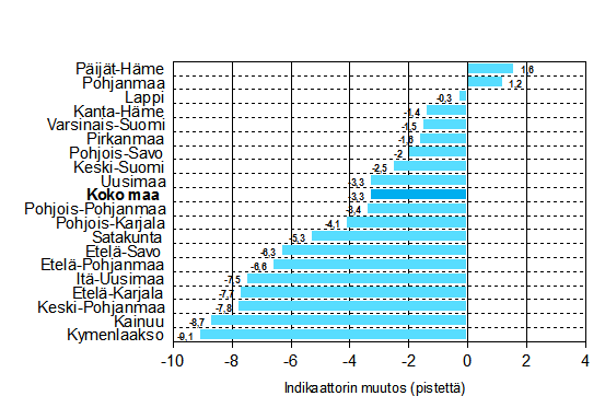 | Etelä-Pohjanmaa | 3,3 | 32,7 | -7,6 | 2,4 | 7,7 | 14,3 | 11,4 |