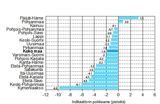 | Etelä-Karjala | 3,1 | 44,7 | -10,3 | -3,2 | 8,6 | 16,3 | 13,1 |