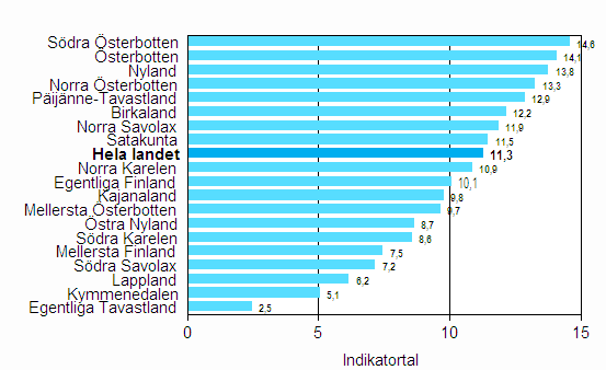 | Österbotten | 6,4 | 51,9 | -11,1 | 9,0 | 14,1 | 15,2 | 14,3 |