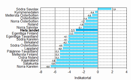 | Södra Karelen | 1,3 | 46,5 | -18,1 | -45,9 | -4,1 | -3,9 | 12,3 |