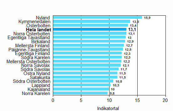 | Österbotten | 0,7 | 54,8 | -14,0 | -47,0 | -1,4 | -9,1 | 13,4 |