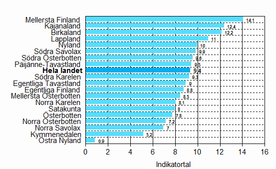 | Södra Österbotten | 4,5 | 43 | 18,2 | -27,2 | 9,6 | 8,8 | 10,8 |