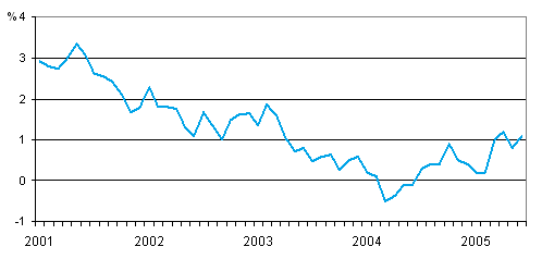 Year-on-year change in consumer prices 1/2001 - 6/2005