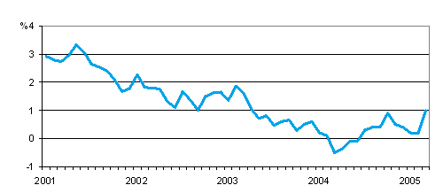 Förändringen av konsumentpriserna på årsnivå 1/2001-6/2005