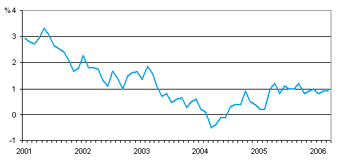 Kuluttajahintojen vuosimuutos 1/2001 - 3/2006