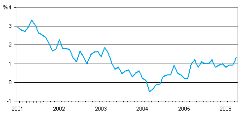 Year-on-year change in consumer prices 1/2001 - 4/2006