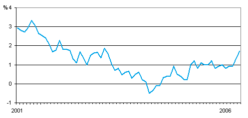 Kuluttajahintojen vuosimuutos 1/2001 - 5/2006