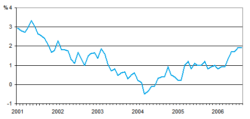 Kuluttajahintojen vuosimuutos 1/2001 - 8/2006