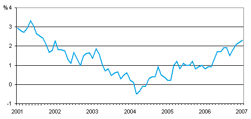 Year-on-year change in consumer prices 1/2001 - 1/2007