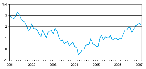 Förändringen av konsumentpriserna på årsnivå 1/2001 - 2/2007