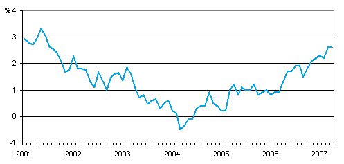 Kuluttajahintojen vuosimuutos 1/2001 - 4/2007